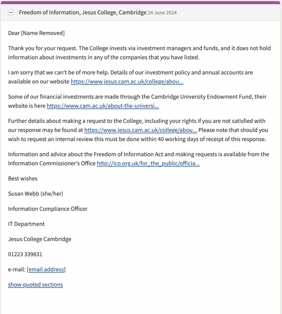 Jesus MCR motion on Palestine submitted but not voted on yet