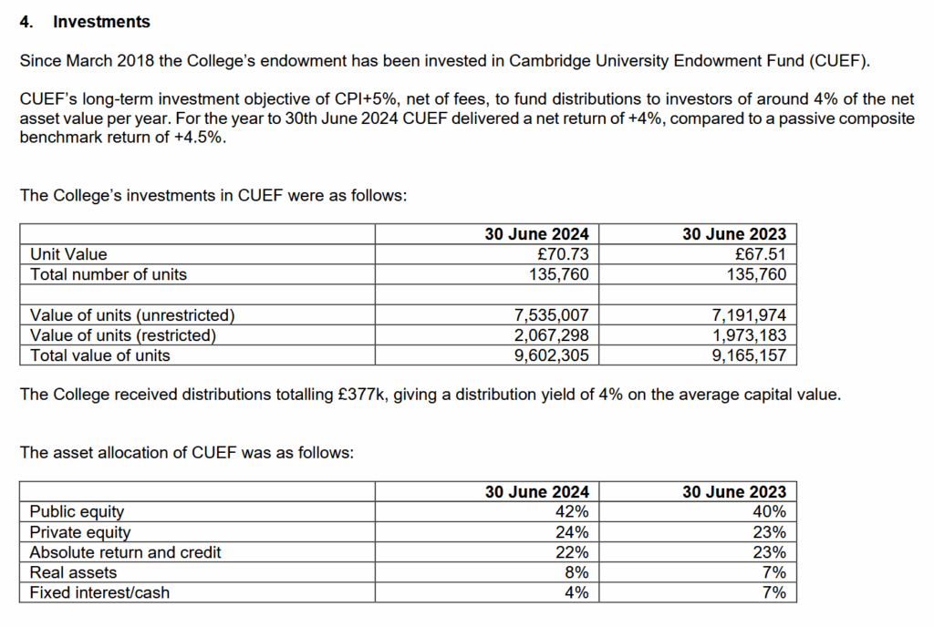 St Edmund’s holds all of its investments within the Cambridge University Endowment Fund, which has not divested.